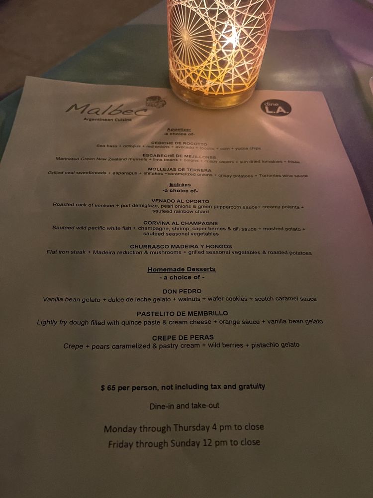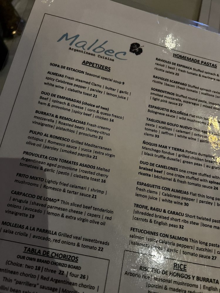 Malbec Argentinean Cuisine Menu (2025 Update)