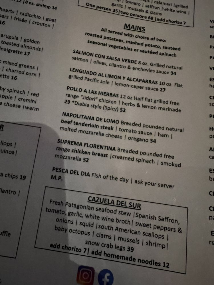 oz. Grilled natural salmon | olives, parsley, cilantro salsa & anchovies sauce